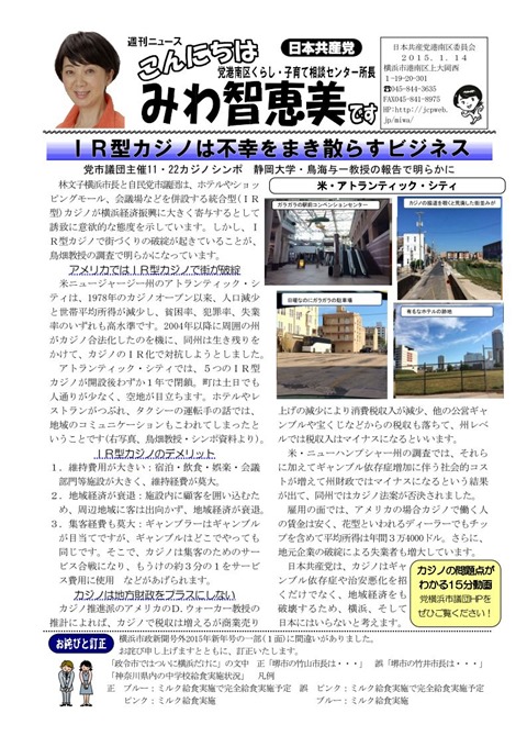 ◎PDF版はこちら「こんにちはみわ智恵美です 1.14号」をごらんください。