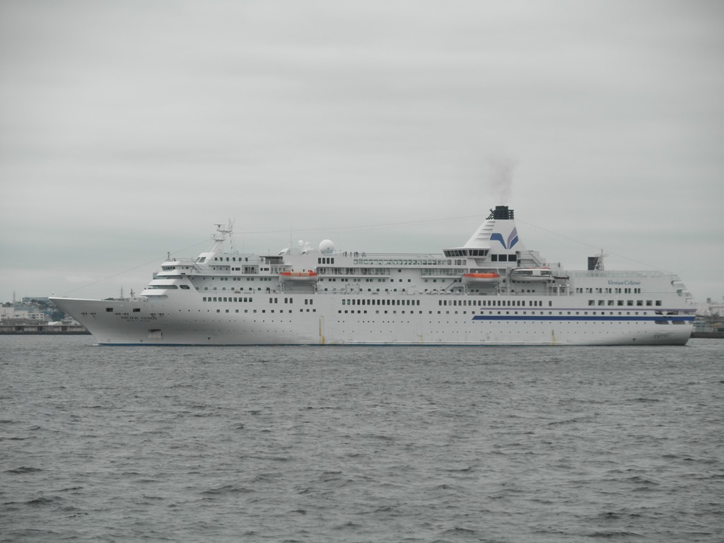 そこへ、ぱしふぃっくびいなすが入港してきました。なかなかのロケーションです。