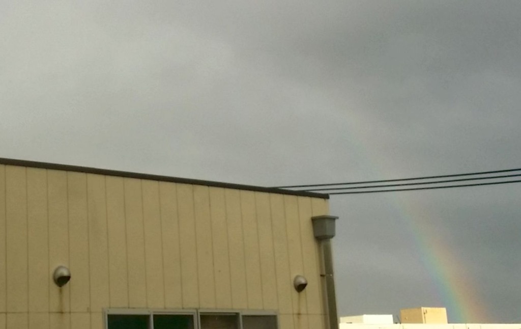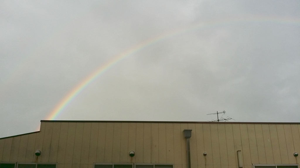 久しぶりにきれいに弧を描いた虹を見ました。区役所の南側は、空が広いのです。
