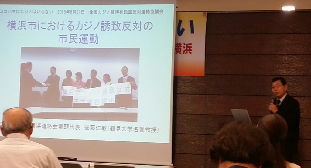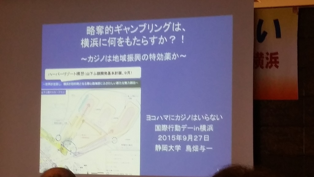 9月27日(日)山下町の神奈川県民ホール大会議室で、「ヨコハマにカジノはいらない」ー略奪的ギャンブル・カジノに反対する国際行動デーin横浜に私も参加しました。