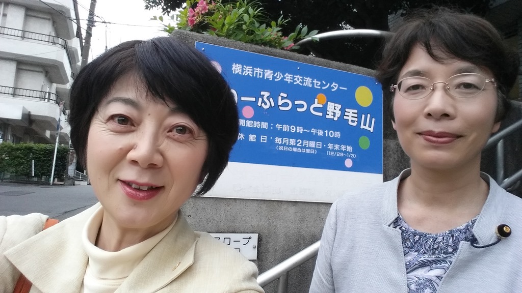 上の三枚の写真は、ふりーふらっと青少年交流センターの調査をする白井議員とみわ智恵美。上は、センター前。中は、鏡が片側の壁全面に貼り付けてあるダンスや、演劇の練習に使える人気の部屋。下は、代替え施設ではなくなる調理室。