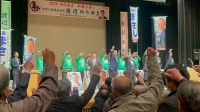 1月17日は伊勢原の渡辺のりゆき県議の新春の集いに出席! 決戦の日に向け、急遽佐藤まさし決起大会に切り替え、大いに盛り上げていただきました!